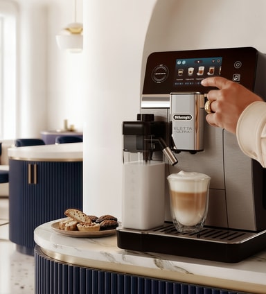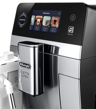 Eletta Ultra har et moderne, fritstående design med et intuitivt touchdisplay, der gør det enkelt og hurtigt at vælge drikke. Det rene finish og den kompakte struktur passer godt ind i moderne køkkener.