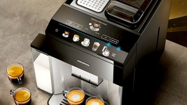 Denne fuldautomatiske espressomaskine kan styres fra enhver smartenhed eller Amazon Alexa via Home Connect-appen, selv når du ligger i sengen. Brug coffeePlaylist når du har gæster, start brygningsprocessen og spring skylleprocessen over, aktiver kopvarmeren og få et overblik over drikkeforbruget. EQ500, coffeeWorld og Home Connect lader dig desuden nyde smagen af op til 18 varme drikke og internationale kaffespecialiteter derhjemme - hvad enten det er en American Red Eye, Wiener Melange eller Portuguese Garoto.