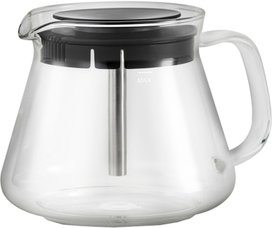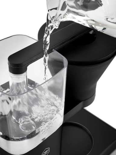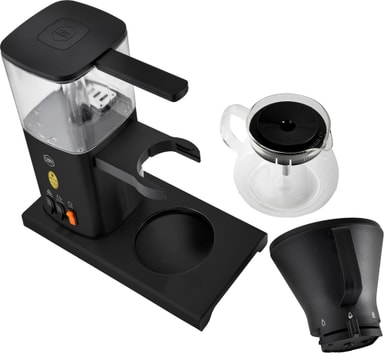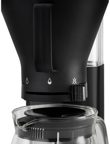 Denne maskine har et moderne design, der kombinerer sort ramme med knapper. Den leveres med vandbeholder og glaskande. Med vandstandsindikatoren kan du lave præcis den rette mængde kaffe til lejligheden.