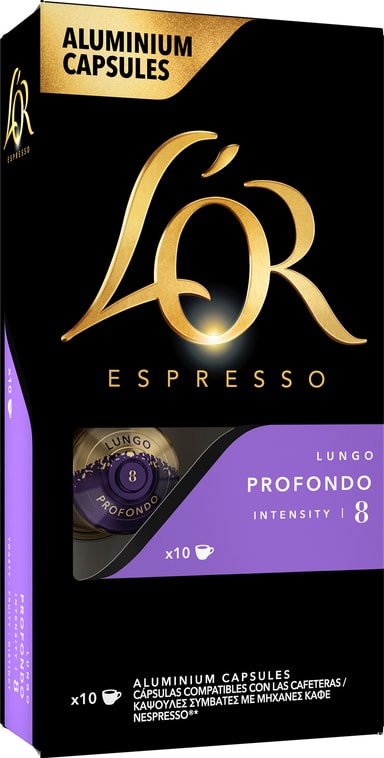 Brug L'Or Lungo 8 Profondo kaffekapslerne 4028594 og nyd den intense aroma fra en medium ristet kaffe med antydninger af chokolade og nødder og en frugtagtig kontrast med din Nespresso* kaffemaskine.Læs mere om produktet