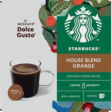 STARBUCKS Grande House Blend Medium Roast Coffee Capsules fra NESCAFÉ Dolce Gusto, rig på toffee-noter.Læs mere om produktet