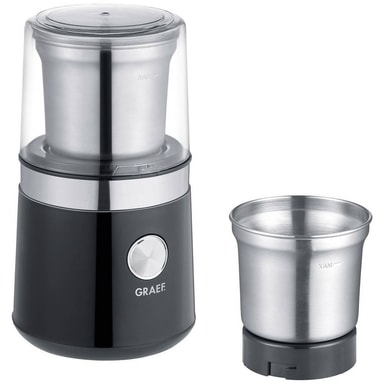 Den kompakte allroundkværn fra Graef kan både malere kaffebønner - for eksempel til French Press - samt krydderier. Med sine to knivindsatser er hver ingrediens hurtigt hakket. To rustfri stålbeholdere med to-bladet kniv til tørre fødevarer samt enLæs mere om produktet