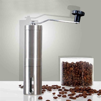 • Manuel kaffekværn i rustfrit stål med keramiske kværnskiver