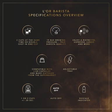 Vi præsenterer L'OR Barista, kaffemaskinen til kapsler, der giver dig samme kvalitet og variation som din yndlingscafé – uden at du behøver gå uden for en dør.