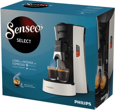 Senseo Select kaffemaskinen CSA23001 har et smukt design med intuitiv betjening til hurtig tilberedning af en eller to kopper kaffe på én gang. Kaffemaskinen har Intensity Plus-funktion, der giver dig mulighed for at vælge mellem tre kaffeintensiteter, mens Crema Plus-teknologien efterlader et lækkert, cremet lag på overfladen. Senseo tilbyder forskellige kaffeblandinger og smagsvarianter, der er produceret med omtanke for vores planet. Vælg den, du kan lide, og nyd din kaffetid.