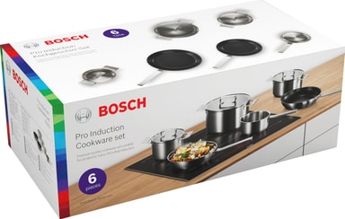 Bosch køkkengrejsæt HEZ9SE060, med 4 gryder i rustfrit stål med låg og 2 pander, vil blive en fast bestanddel i dit køkken. Sættet har dobbelt bund med non-stick belægning og er velegnet til el- og induktionskogeplader.Læs mere om produktet