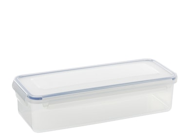 Opbevaringsboks rektangulær m/låg 1,7 liter. Funktion. Mål: 300 x 118 x 72 mm. Lufttæt opbevaringsboks med 4 klips og gummikant. Kan anvendes i mikroovn. Åben altid låget ved brug i mikroovn. Tåler frost. Tåler maskinopvask.Læs mere om produktet