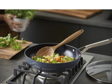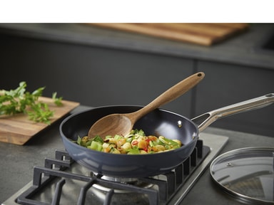 Sauterpande fremstillet af støbt aluminium, som sikrer, at varmen fordeles og fastholdes jævnt og effektivt over både bund og siderLæs mere om produktet