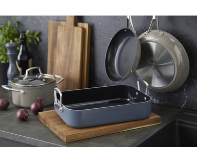Stegepande fremstillet af støbt aluminium, som sikrer, at varmen fordeles og fastholdes jævnt og effektivt over både bund og siderLæs mere om produktet