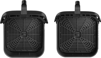 Med et strømforbrug på 2360 watt tilbyder denne airfryer en rummelig kapacitet på 10,8 kg. Den inkluderer to keramisk-belagte kurve med kapaciteter på henholdsvis 4,2 liter og 6,6 liter.