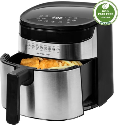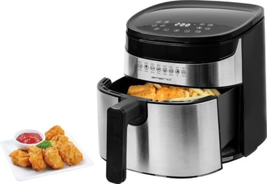 Emerio Smart Fryer air fryeren AF-131267 har en kapacitet på 4,5 l og 8 forudindstillede tilberedningsprogrammer til kød, pommes frites og grøntsager. Den har også en justerbar termostat, digital skærm og en timer til nem og bekvem madlavning.Læs mere om produktet