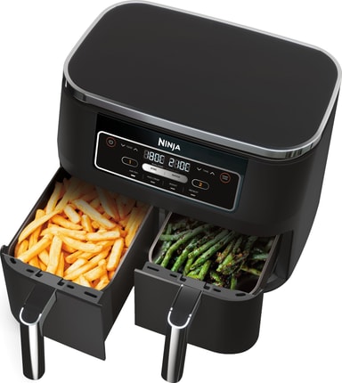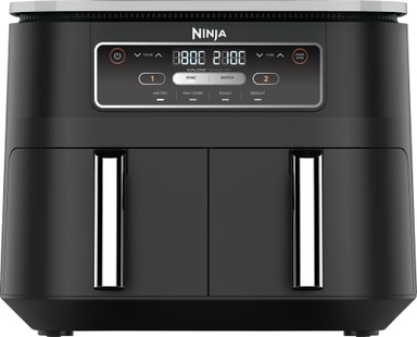 Ninja Dual Zone airfryeren DZ100 på 2.400 watt lader dig lave to retter på én gang i forskellige skuffer. Med 7,6 l kapacitet, 4 funktioner og Sync/Match-indstillinger gør den sunde måltidsforberedelse nemmere.Læs mere om produktet