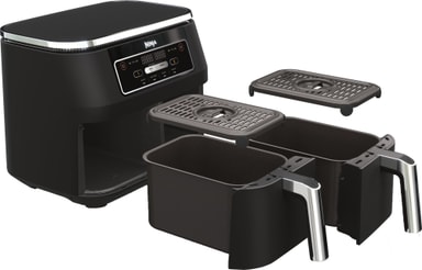 Denne airfryer har en effekt på 2.400W og to skuffer, hvilket giver dig fleksibilitet til at lave mad til dig selv eller en gruppe. Hver skuffe har en kapacitet på 3,8 liter, og en samlet kapacitet på 1,6 kg eller 7,6 liter. Dette kan nemt rumme 1 kg pommes frites eller en hel 1,6 kg kylling.