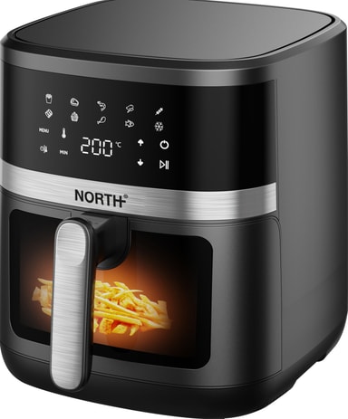Denne 6,5 liters North airfryer 205001 har 12 forudindstillede tilberedningsfunktioner til stegning, stegning, grillning, bagning og opvarmning af mad. Airfryeren leveres med en justerbar termostat, et digitalt display og et visningsvindue.Læs mere om produktet