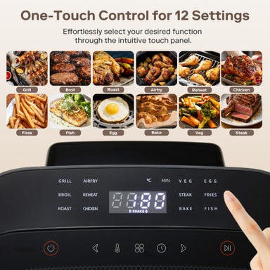 Vælg mellem 13 forudindstillede tilberedningsprogrammer, inklusive stegning, bagning, grillning, stegning og genopvarmning af kød og grøntsager.
