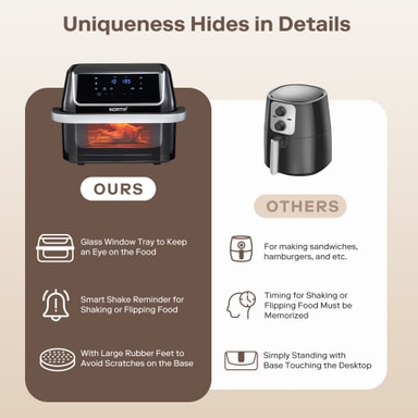 Rysteindikatoren blinker for at minde dig om at ryste eller vende fritter og nuggets, hvilket sikrer, at de opnår en gylden, lækker sprød.