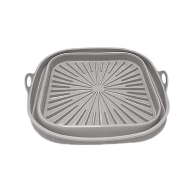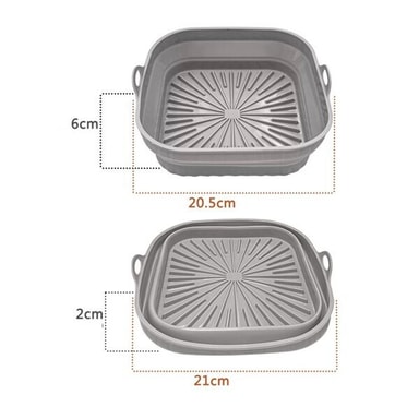 Denne firkantede airfryer-bakke i silikone gør madlavningen nemmere og renere. Takket være den varmebestandige silikonekonstruktion fordeles varmen jævnt, og maden tilberedes effektivt uden at klæbe til bunden. De praktiske bærehåndtag gør bakken let at løfte ud af airfryeren, selv når den er varm.