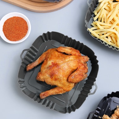Beskytter din Airfryer: Ved at lægge maden i en beholder undgår du klistrede og brændte rester, samt olie i frituregryden. Praktisk design med høj kant letter også når du skal tage mad ind og ud af airfryeren. Desuden perfekt til brug i mikroovnen.