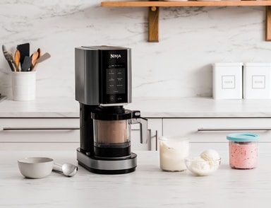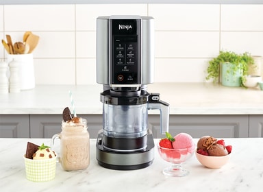 Lav frosne desserter, når du har lyst, med Ninja-ismaskinen NC302EU. Med 7 forudindstillede programmer kan du lave op til 900 ml dessert. Den leveres med 2 skåle, der tåler opvaskemaskine, og en opskriftguide.Læs mere om produktet