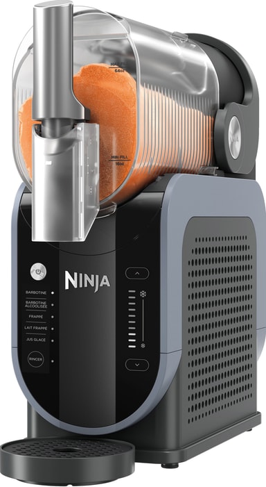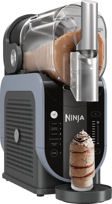 Ninja Slushi slushicemaskinen FS301EU laver væske til slushice på ca. 30 min. Med 5 programmer og en 2,5 L beholder (1,9 L max kapacitet), serverer den over 7 drinks og holder dem frosne i op til 12 timer.Læs mere om produktet