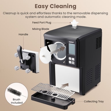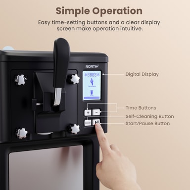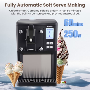 North ismaskinen 205104 (Sort) er en fuldautomatisk softice-maskine, der laver friske lækkerier på 10-20 minutter uden forudfrysning. Med en kapacitet på 1,5 liter, aftageligt dispenseringssystem og hold-kold-funktion er den perfekt til at lave tilpassede, sjove desserter sammen med familie og venner. Stilfuld, holdbar og nem at rengøre.