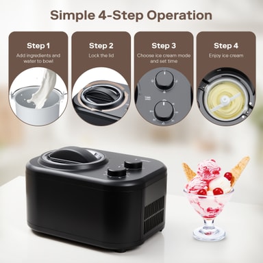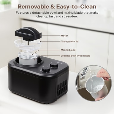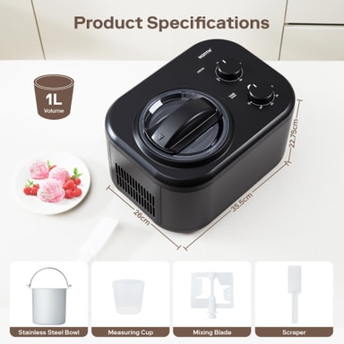 En aftagelig skål på 1 liter er perfekt til at lave frisk, cremet is på bare 60 minutter. Den kompakte kapacitet er ideel til små portioner og sikrer lækre hjemmelavede lækkerier til enkeltpersoner eller små sammenkomster.