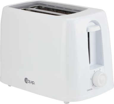 Få sprøde, gyldne toasts med Equip brødristeren 34680. Brødristeren har plads til 2 brødskiver på én gang og har 6 bruningsindstillinger. Den har også en annulleringsfunktion og en aftagelig krummebakke for effektiv drift og nem rengøring.