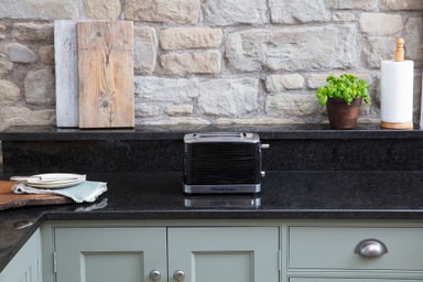 Design: Denne stilfulde, sorte brødrister med tekstureret finish passer ind i ethvert moderne køkken.