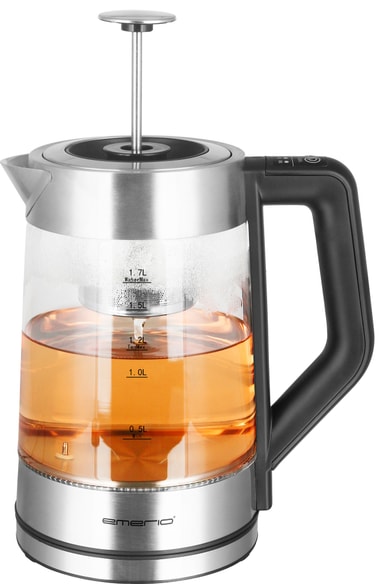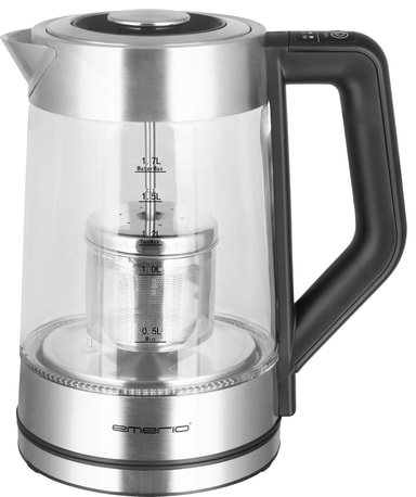 Klar morgen-teen nemt med denne Emerio elkedel WK122730. Du får et praktisk bryggekar i rustfrit stål til dine teblade og 5 smarte varmeindstillinger. Elkedlen har derudover en kapacitet på 1,7 l, indre lys og et 360-grader ledningsløst design.