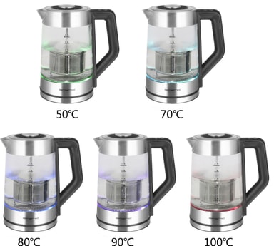 Elkedlen tilbyder 5 varmeindstillinger, der ved hvert temperaturniveau vil lyse op i en forskellig farve.
