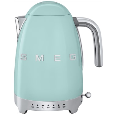 Design: Et kendt italiensk mærke Smeg har slået sit navn fast i verden takket være en række husholdningsapparater, der kombinerer klassisk retro design med moderne teknologi. Denne elkedel er iøjenfaldende på grund af dens 50'er retro stil og elegante linjer, der passer flot ind i ethvert slags køkken.