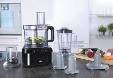 Braun PurEase foodprocessoren FP3132BK er en alsidig enhed, der gør det muligt at hakke, rive, skære, piske, lave puré, ælte, kværne og klemme med ét tryk. Foodprocessoren har generøs kapacitet og kraft på 800 watt.Læs mere om produktet