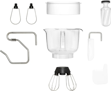 Alsidig maskine: Takket være et stort udvalg af tilbehør, som kødkværn, slicer, dejkrog, citruspresser og pastarulle, bliver apparatet til en praktisk universalmaskine, der hjælper dig med alle dine madlavningsopgaver . Tilbehøret skal købes separat.