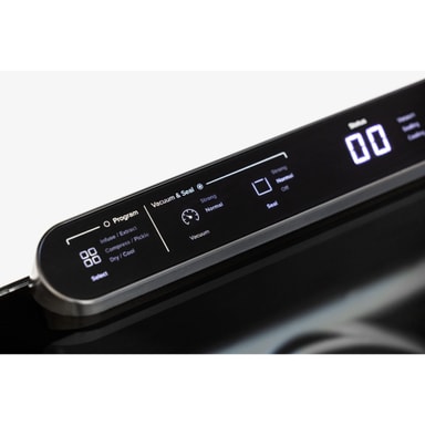 Det trykudlignede miljø åbner også op for en række alternative tilberedningsteknikker. Vi har forprogrammeret de mest nyttige indstillinger direkte i forseglingsenhedens interface: infusére/udtrække, komprimére/sylet, og tørre/køle