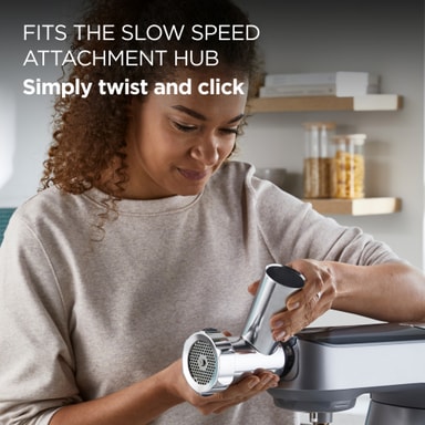 Denne Kenwood kødhakker KAX950ME med 3 hakkeskærme lader dig hakke al slags kød lige fra mundvandsfremdrivende burgere til lasagne eller kødtærter.