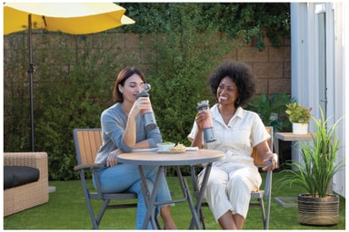 Nutri Ninja leveres med en blenderkop fremstillet af BPA-fri plast, der også fungerer som drikkekop. Den kommer med et drikkelåg med bærehåndtag, perfekt når du er på farten. Koppen har en kapacitet på 530 ml.