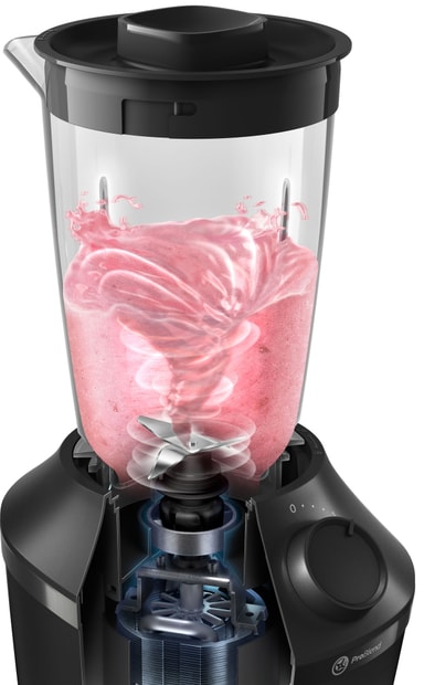 Denne teknologi kombinerer 3 nøgleaspekter for at levere en jævn konsistens - en motor på 450 W, unikt udformede, rustfrie stålklinger og en specialdesignet kande med riller, som fører ingredienserne rundt langs blenderstrømmen.
