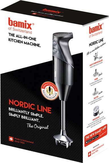Bamix Nordic Line stavblenderen BAM13355 er en kraftfuld og alsidig stavblender, der gar 3 knive i rustfrit stål og en kraftfuld food processor.Læs mere om produktet