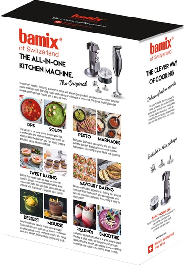 Bamix er lavet i Schweiz i typisk schweizisk kvalitet. Alt tilbehøret er lavet i kvalitetsmaterialer, og de er rustfri, lugtfri og er sikre i forhold til madvarer.