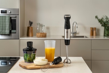 Alt tilbehør til stavblenderen kan tages af og rengøres i opvaskemaskinen.