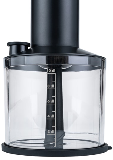 Den 1-liters præcisionshakker har en kniv placeret kun 2 mm fra bunden for jævn og ensartet hakning. Et påfyldningshul gør det muligt at tilsætte olie eller væsker under forarbejdningen, ideelt til at lave dressinger eller nøddesmør.