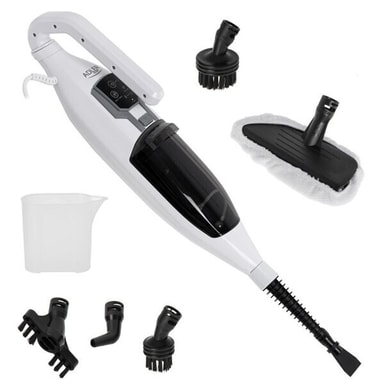 - Tilbehør: 1x buet mundstykke, 1x lille rundbørste, 1x stor rundbørste, 1x sprækkeredskab, 1x gummiskraber, 1x skraber, 1x stofbetræk til gummiskraber, 2x runde moppepuder