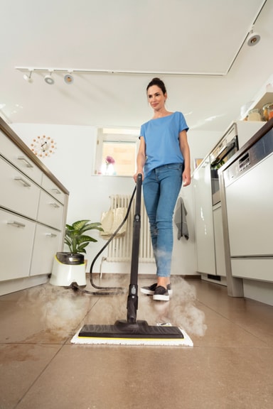 Hurtig rengøring er en leg med SC3-damprenseren takket være den hurtige opvarmningstid på 30 sekunder. Du kan bruge damprenseren på alle typer overflader fra trægulve til bordplader og trange rum.