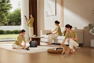 Dreame N20 Steam tilbyder fire forskellige rengøringstilstande, der er tilpasset forskellige materialer og typer af pletter. Steam Wash kombinerer 100 °C damp med sugeevne og er ideel til at opfriske gardiner, puder og tæpper. Steam‑tilstanden anvender kraftig damp til effektiv rengøring af hårde overflader som fliser og filtre i emhætter.