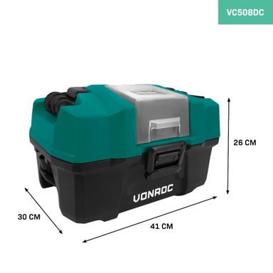 • Leder du efter mindre kompakt, men en maskine til tungere arbejde? Tag et kig på VONROC våd- og tørstøvsugeren 1400W med 20L beholder og 6M strømkabel (VC504AC).