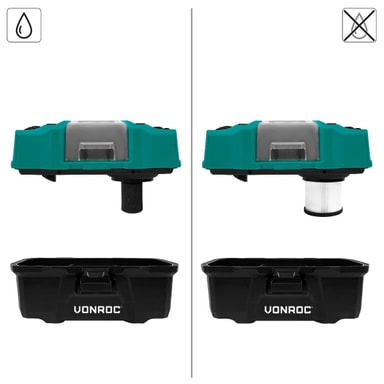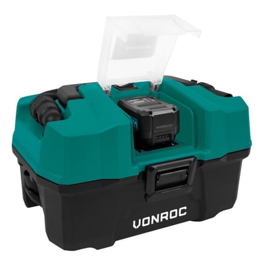 Denne kompakte universal støvsuger leveres med en akku og oplader, fordi den er en del af VONROC 20V Platform. Bestilling af udskiftelige 2,0Ah- eller 4,0Ah-batterier er valgfrit. Hvis du ønsker at kombinere støvsugeren med et andet produkt fra VONROC 20V-platformen, er et batteri og en hurtigoplader alt, hvad du behøver! Du skal blot vælge det du har brug for, til en konkurrencedygtig pris!