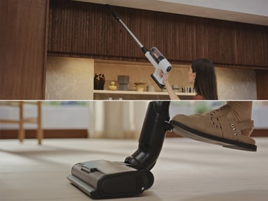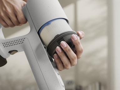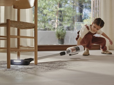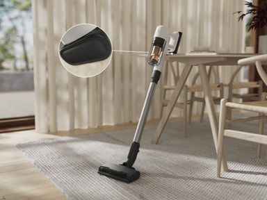 Leverer op til 99%* støvopsamling med hvert fremad- og bagudrettet strøg – for en nem og effektiv rengøring. AllFloor Auto mundstykket glider ubesværet fra hårde gulve til tæpper og sikrer en grundig fjernelse af skidt og snavs.