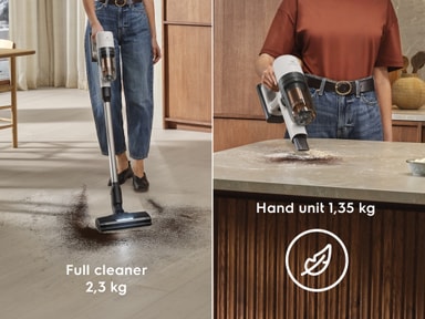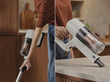 Denne kraftfulde og kompakte støvsuger, der blot vejer 1,35 kg i hånden, er designet til nem og fleksibel brug. Kom rundt i alle hjørner fra gulv til loft og brug hurtig udløsning af redskaber til nem overgang fra den ene opgave til den anden.