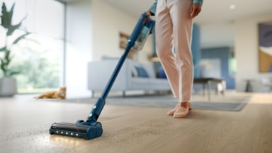TriActive multi-LED mundstykket fjerner meget støv og snavs i én omgang. Det opsamler fint støv, smuds og hår på alle gulvtyper. LED-lys afslører skjult snavs, og den rengør op til 3 mm fra kanter og hjørner.
