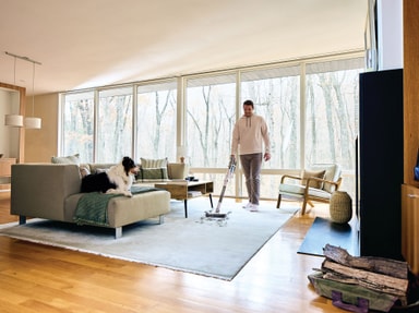 Med 75AW sugeeffekt fjerner støvsugeren effektivt støv, snavs og kæledyrshår på forskellige gulvtyper. Den selvrensende børsterulle forhindrer sammenfiltring og sikrer konstant ydeevne.
